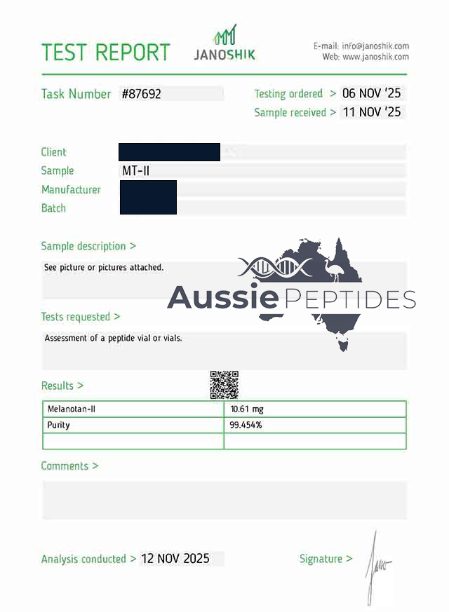 | Melanotan II (10mg) | PEP-009-10MG | Tanning & Libido | 99.454% | Available | View CoA |