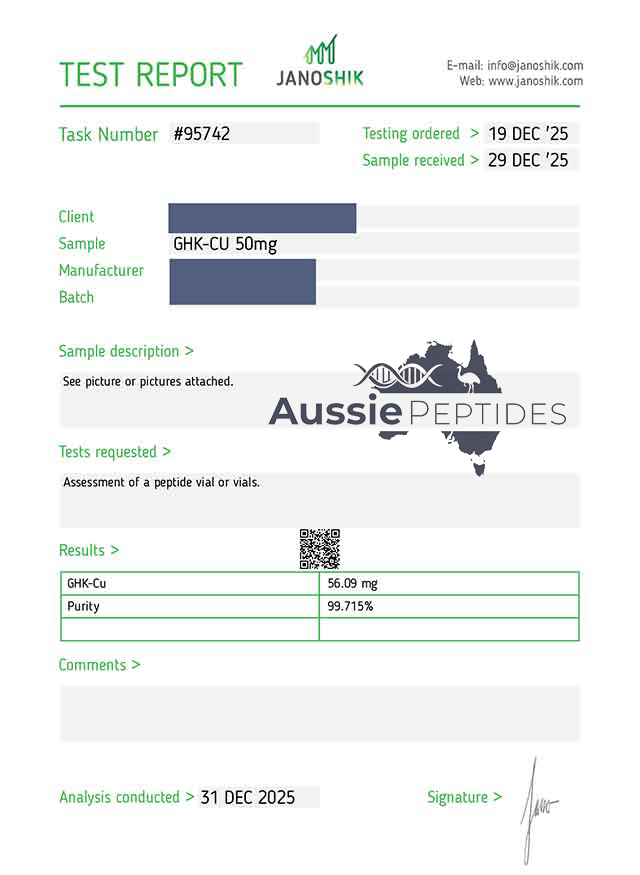 | GHK-Cu (50mg) | PEP-010-50MG | Anti-Ageing | 99.715% | Available | View CoA |
