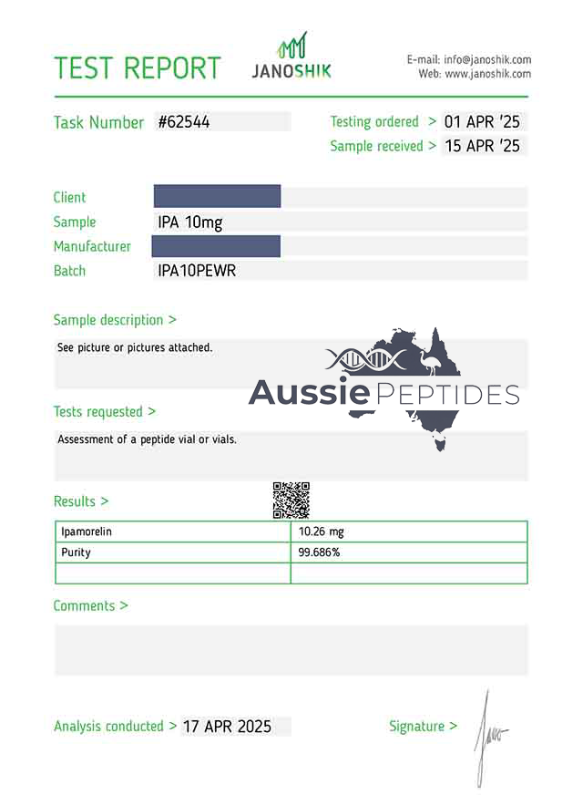 | Ipamorelin (10mg) | PEP-023-10MG | Performance & Recovery | 99.686% | Available | View CoA |