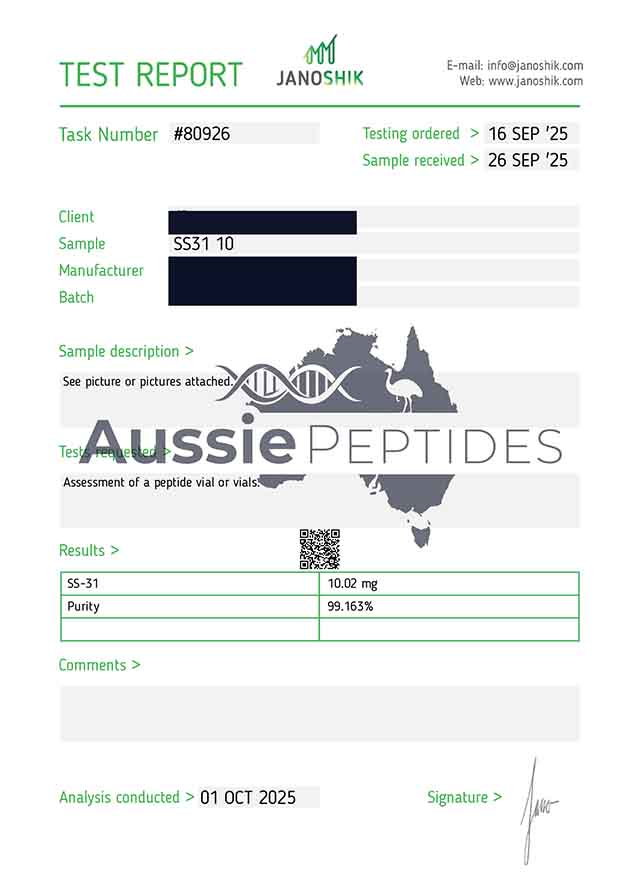 | SS-31 (10mg) | PEP-020-10MG | Longevity | 99.163% | Available | View CoA |