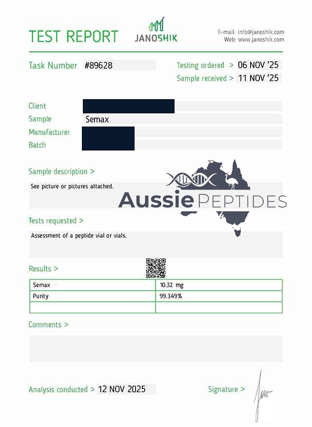 Full CoA PDF documents — including HPLC chromatograms and mass spectrometry data — are available for any current batch upon request. Contact us with your order number or product of interest.