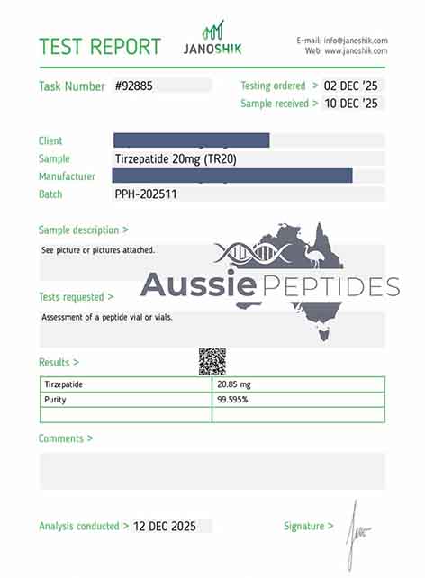 | Tirzepatide (20mg) | PEP-021-20MG | Weight Management | 99.595% | Available | View CoA |