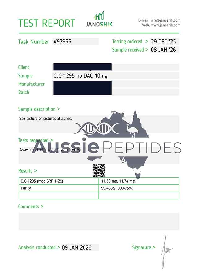 | CJC-1295 (no DAC) (10mg) | PEP-016-10MG | Performance & Recovery | 99.488% | Available | View CoA |